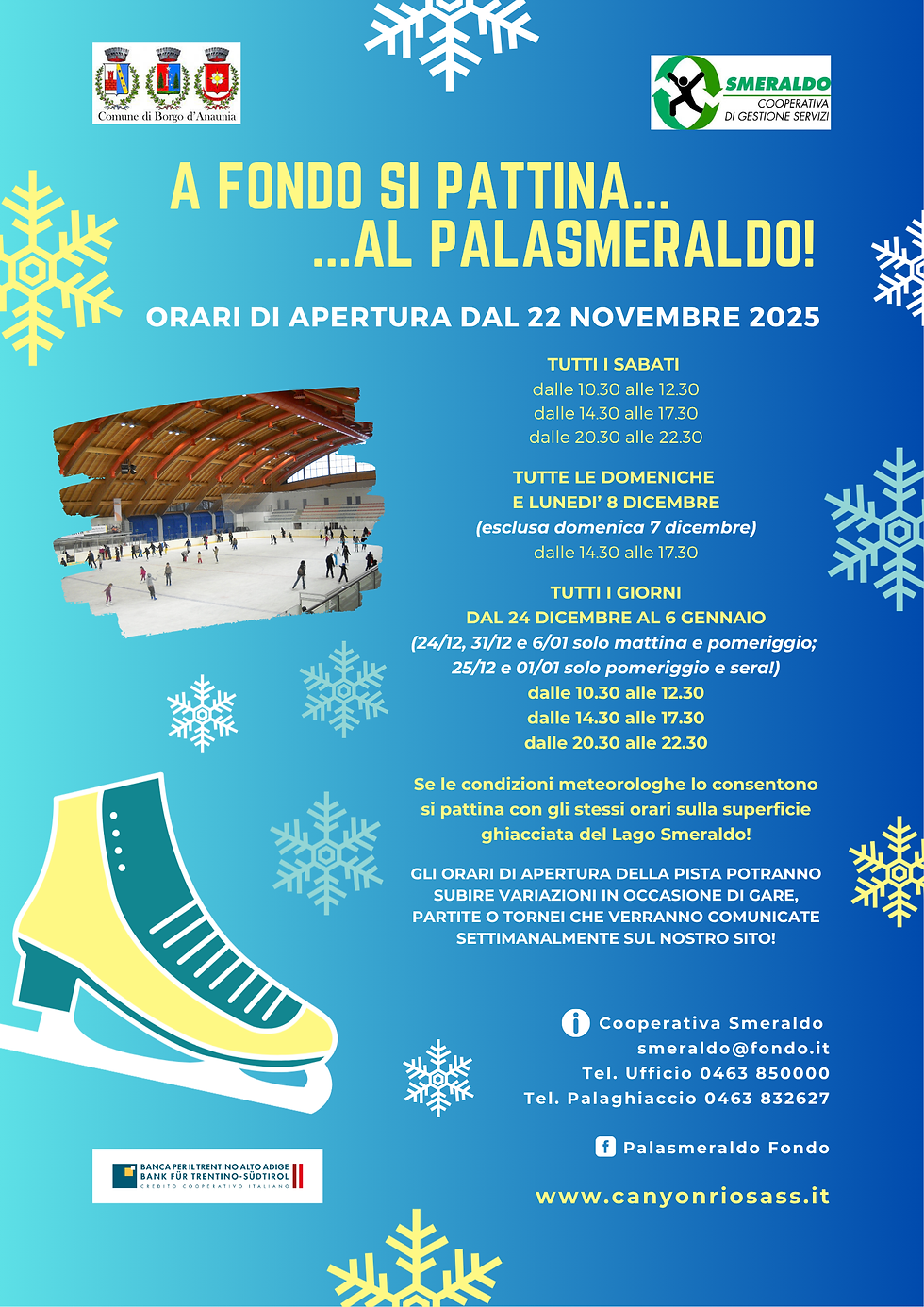 La Cooperativa Smeraldo Scarl è nata nel 2001 per la gestione del Canyon Rio Sass e del Palanaunia. Negli anni successivi ha preso in gestione anche il Palasmeraldo e il piccolo museo interattivo La Casa dell'Acqua con annesso Mulino Bertagnolli.